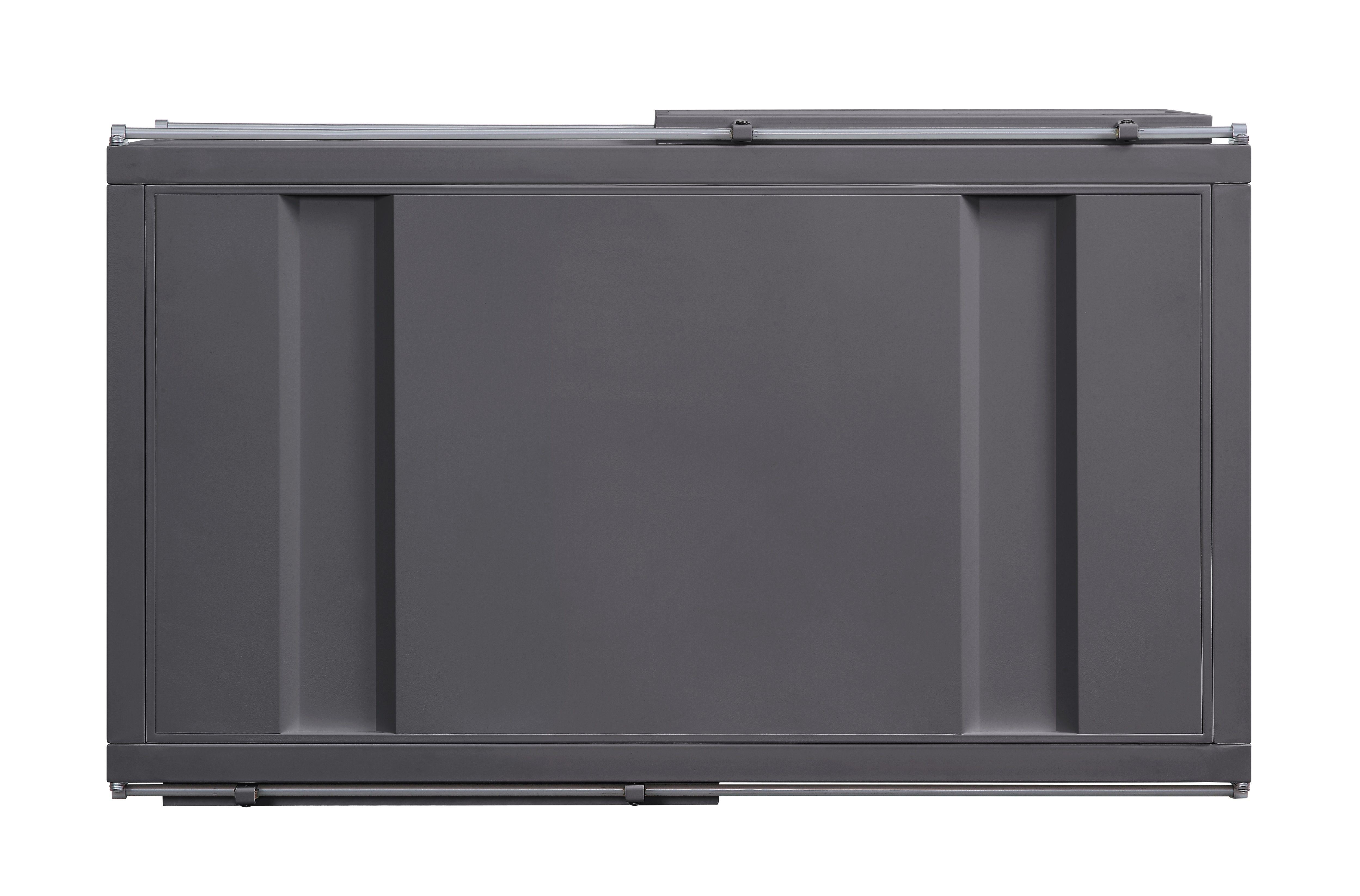 Product Details : KD; Rectangular Coffee Table : Storage: 1 Sliding Door (Inside 1 Compartment) : Features: Metal Frame; Recessed Panels (Cargo Container Panels); Full-Length Container Lock : (NO LEGS) :: CONSTRUCTION :: Metal Case: Iron Plate (40mm)